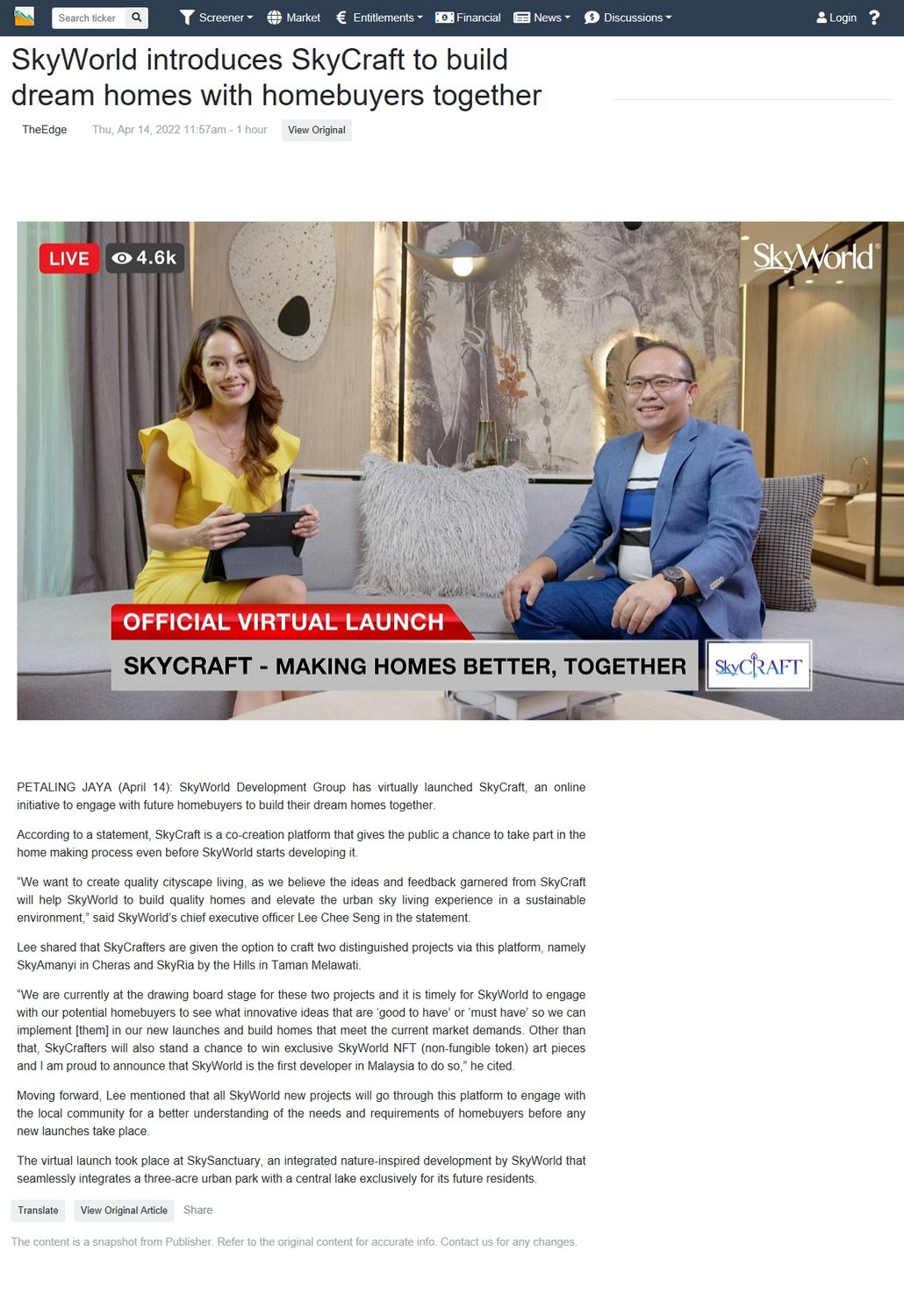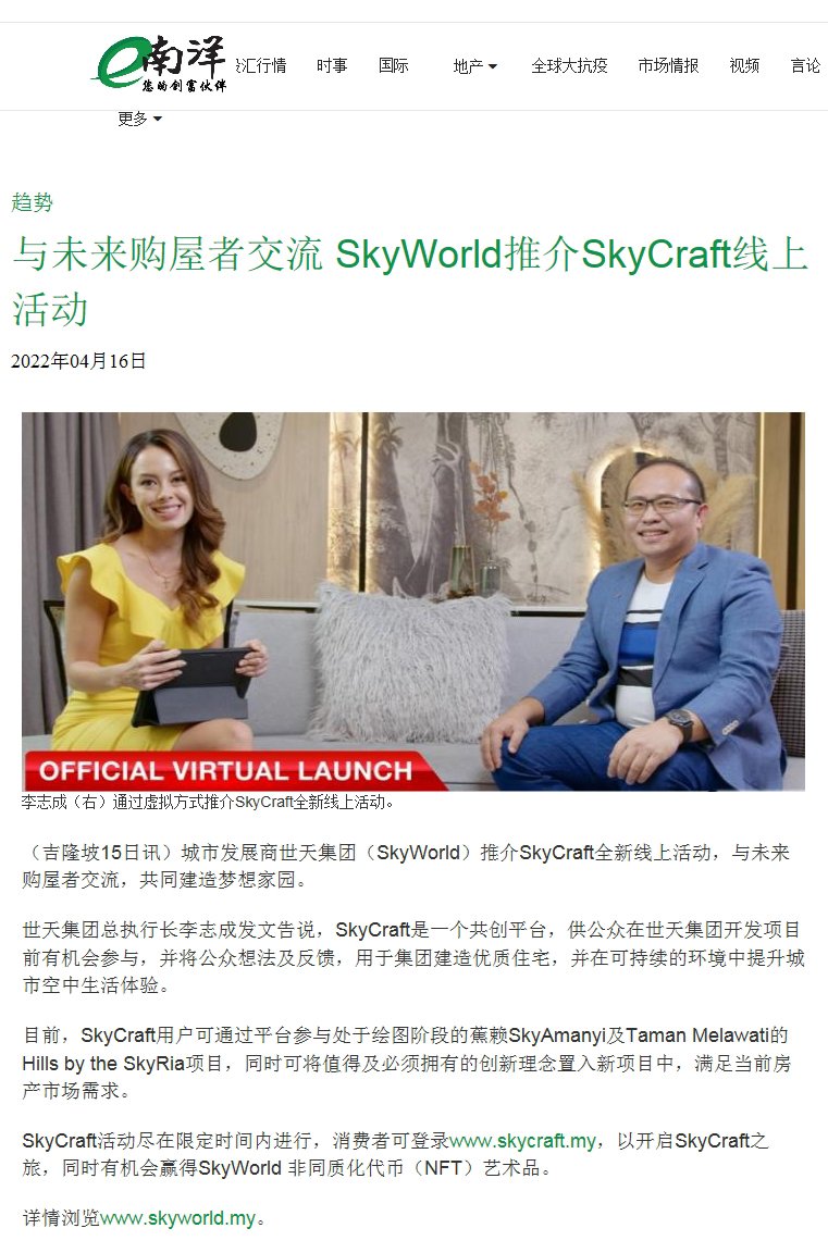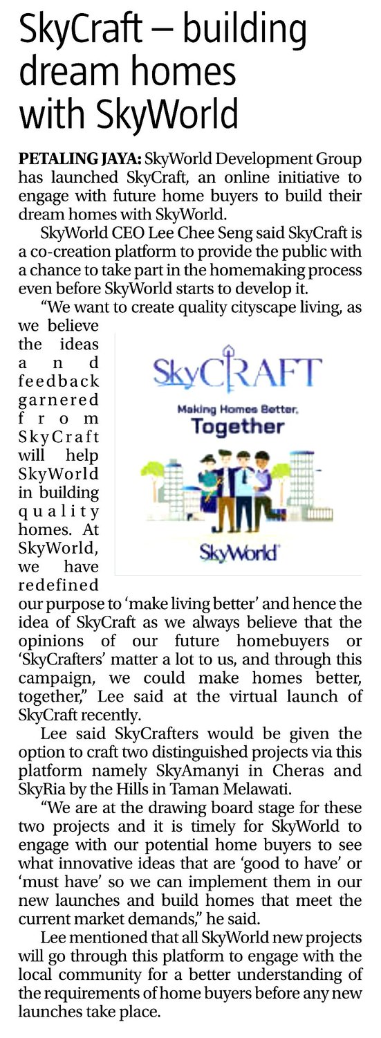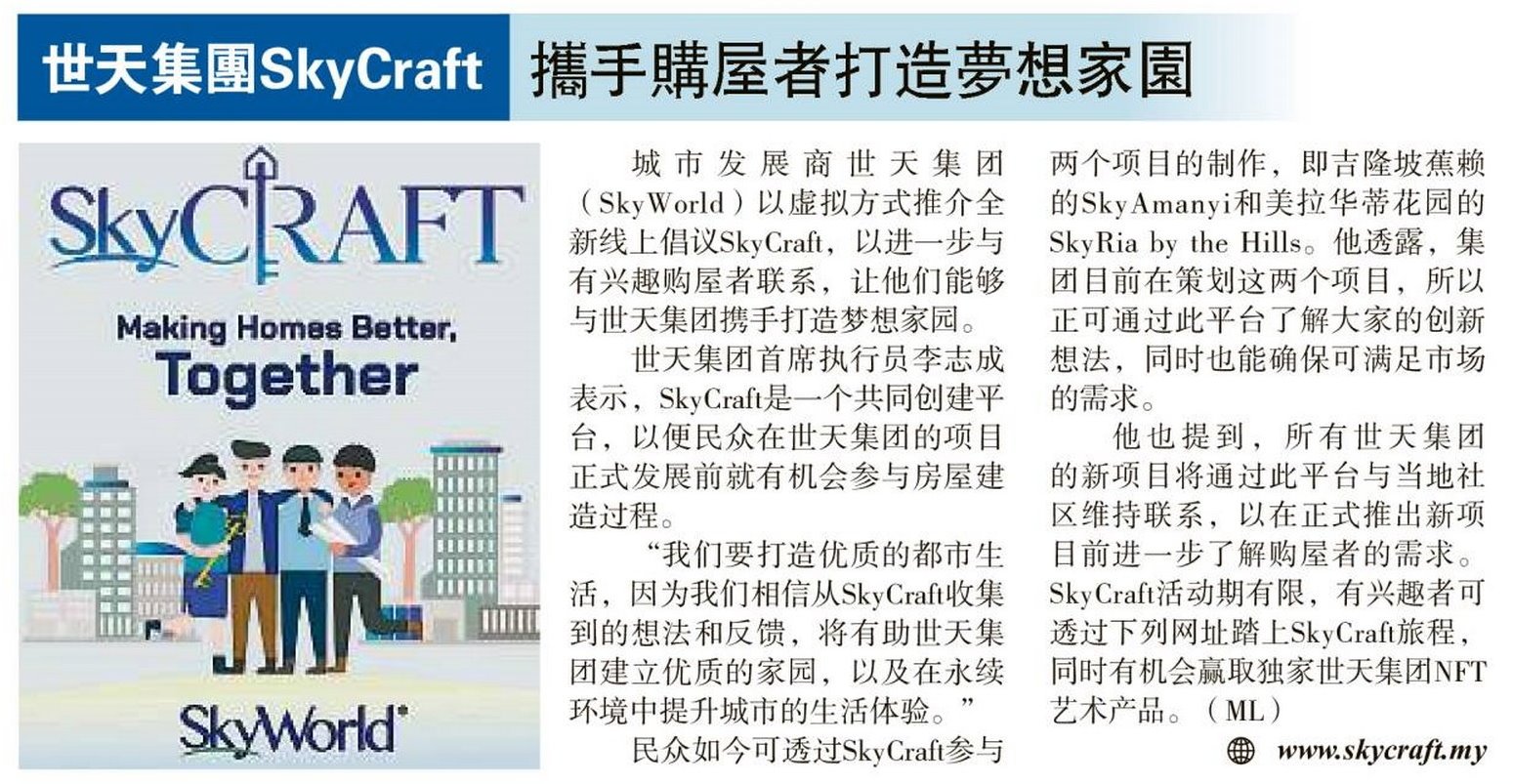 On 9 April 2022, SkyWorld virtually launched SkyCraft – a new online initiative to engage with future homebuyers, to build their dream homes together with SkyWorld.